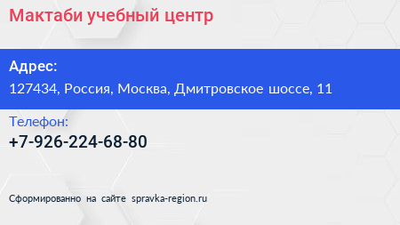 Мактаби, учебный центр по адресу 127434, Россия, Москва, Дмитровское шоссе, 11 в дальнейшем Организация, размещена в следующих категориях: