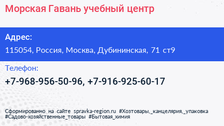 Морская Гавань, учебный центр по адресу 115054, Россия, Москва, Дубининская, 71 ст9 в дальнейшем Организация, размещена в следующих категориях: