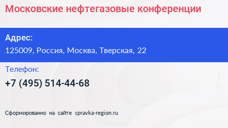 Московские нефтегазовые конференции по адресу 125009, Россия, Москва, Тверская, 22 в дальнейшем Организация, размещена в следующих категориях: