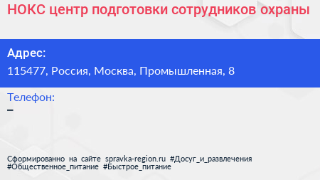 НОКС, центр подготовки сотрудников охраны по адресу 115477, Россия, Москва, Промышленная, 8 в дальнейшем Организация, размещена в следующих категориях: