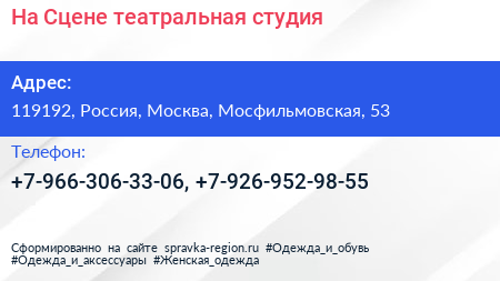 На Сцене, театральная студия по адресу 119192, Россия, Москва, Мосфильмовская, 53 в дальнейшем Организация, размещена в следующих категориях: