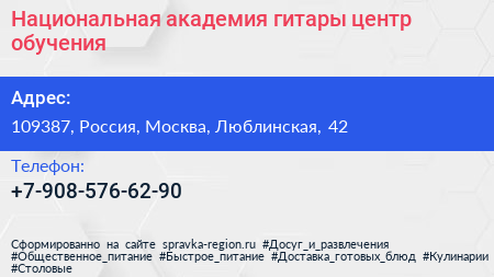 Национальная академия гитары, центр обучения по адресу 109387, Россия, Москва, Люблинская, 42 в дальнейшем Организация, размещена в следующих категориях: