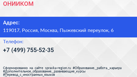 ОНИИКОМ по адресу 119017, Россия, Москва, Пыжевский переулок, 6 в дальнейшем Организация, размещена в следующих категориях: