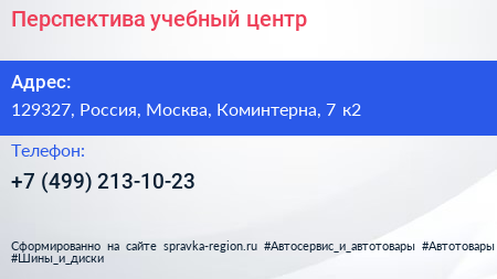 Перспектива, учебный центр по адресу 129327, Россия, Москва, Коминтерна, 7 к2 в дальнейшем Организация, размещена в следующих категориях: