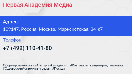 Первая Академия Медиа по адресу 109147, Россия, Москва, Марксистская, 34 к7 в дальнейшем Организация, размещена в следующих категориях: