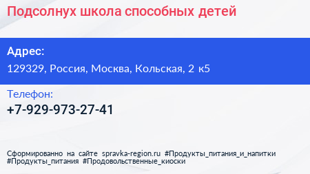 Подсолнух, школа способных детей по адресу 129329, Россия, Москва, Кольская, 2 к5 в дальнейшем Организация, размещена в следующих категориях: