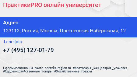 ПрактикиPRO, онлайн-университет по адресу 123112, Россия, Москва, Пресненская Набережная, 12 в дальнейшем Организация, размещена в следующих категориях: