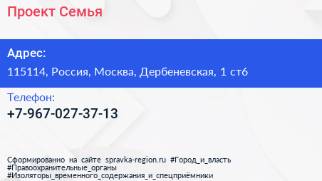 Проект Семья по адресу 115114, Россия, Москва, Дербеневская, 1 ст6 в дальнейшем Организация, размещена в следующих категориях:
