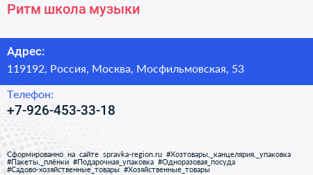 Ритм, школа музыки по адресу 119192, Россия, Москва, Мосфильмовская, 53 в дальнейшем Организация, размещена в следующих категориях: