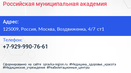 Российская муниципальная академия по адресу 125009, Россия, Москва, Воздвиженка, 4/7 ст1 в дальнейшем Организация, размещена в следующих категориях:
