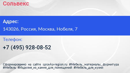 Сольвекс по адресу 143026, Россия, Москва, Нобеля, 7 в дальнейшем Организация, размещена в следующих категориях: