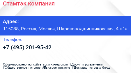 Стамтэк, компания по адресу 115088, Россия, Москва, Шарикоподшипниковская, 4 к1а в дальнейшем Организация, размещена в следующих категориях: