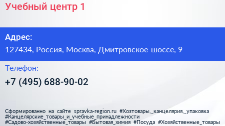 Учебный центр №1 по адресу 127434, Россия, Москва, Дмитровское шоссе, 9 в дальнейшем Организация, размещена в следующих категориях: