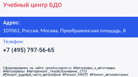 Учебный центр БДО по адресу 107061, Россия, Москва, Преображенская площадь, 8 в дальнейшем Организация, размещена в следующих категориях: