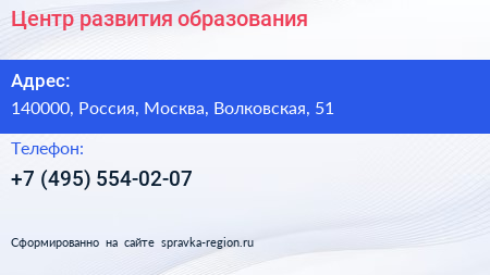Центр развития образования по адресу 140000, Россия, Москва, Волковская, 51 в дальнейшем Организация, размещена в следующих категориях: