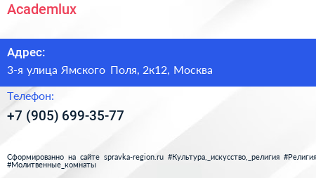 Academlux по адресу 3-я улица Ямского Поля, 2к12, Москва в дальнейшем Организация, размещена в следующих категориях: