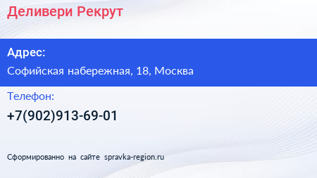 Деливери Рекрут по адресу Софийская набережная, 18, Москва в дальнейшем Организация, размещена в следующих категориях: