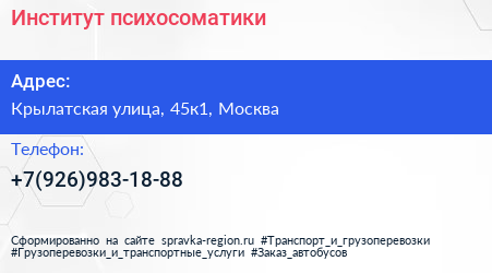 Институт психосоматики по адресу Крылатская улица, 45к1, Москва в дальнейшем Организация, размещена в следующих категориях: