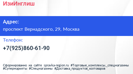 ИзиИнглиш по адресу проспект Вернадского, 29, Москва в дальнейшем Организация, размещена в следующих категориях: