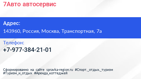 7Авто, автосервис по адресу 143960, Россия, Москва, Транспортная, 7а в дальнейшем Организация, размещена в следующих категориях: