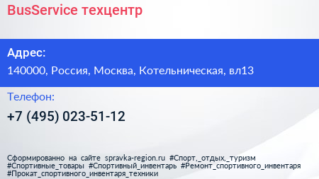 BusService, техцентр по адресу 140000, Россия, Москва, Котельническая, вл13 в дальнейшем Организация, размещена в следующих категориях: