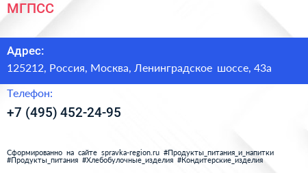 МГПСС по адресу 125212, Россия, Москва, Ленинградское шоссе, 43а в дальнейшем Организация, размещена в следующих категориях: