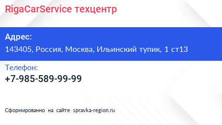 RigaCarService, техцентр по адресу 143405, Россия, Москва, Ильинский тупик, 1 ст13 в дальнейшем Организация, размещена в следующих категориях:
