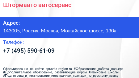 Штормавто, автосервис по адресу 143005, Россия, Москва, Можайское шоссе, 130а в дальнейшем Организация, размещена в следующих категориях: