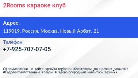 2Rooms, караоке-клуб по адресу 119019, Россия, Москва, Новый Арбат, 21 в дальнейшем Организация, размещена в следующих категориях: