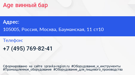 Age, винный бар по адресу 105005, Россия, Москва, Бауманская, 11 ст10 в дальнейшем Организация, размещена в следующих категориях: