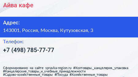 Айва, кафе по адресу 143001, Россия, Москва, Кутузовская, 3 в дальнейшем Организация, размещена в следующих категориях: