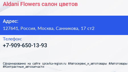 Aldani Flowers, салон цветов по адресу 127641, Россия, Москва, Санникова, 17 ст2 в дальнейшем Организация, размещена в следующих категориях: