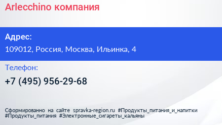 Arlecchino, компания по адресу 109012, Россия, Москва, Ильинка, 4 в дальнейшем Организация, размещена в следующих категориях:
