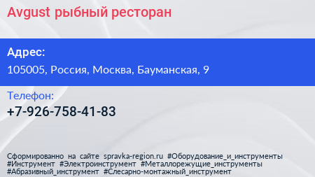 Avgust, рыбный ресторан по адресу 105005, Россия, Москва, Бауманская, 9 в дальнейшем Организация, размещена в следующих категориях:
