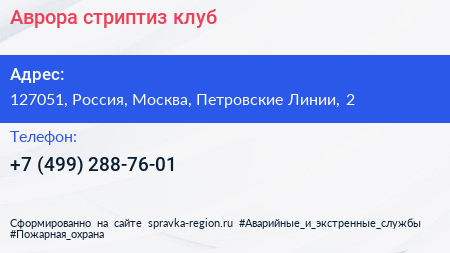Аврора, стриптиз-клуб по адресу 127051, Россия, Москва, Петровские Линии, 2 в дальнейшем Организация, размещена в следующих категориях: