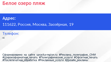 Белое озеро, пляж по адресу 111622, Россия, Москва, Заозёрная, 19 в дальнейшем Организация, размещена в следующих категориях: