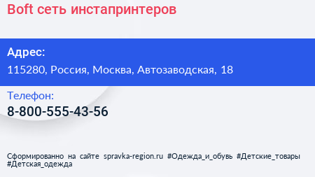 Boft, сеть инстапринтеров по адресу 115280, Россия, Москва, Автозаводская, 18 в дальнейшем Организация, размещена в следующих категориях: