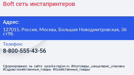 Boft, сеть инстапринтеров по адресу 127015, Россия, Москва, Большая Новодмитровская, 36 ст9Б в дальнейшем Организация, размещена в следующих категориях: