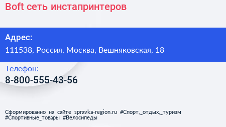 Boft, сеть инстапринтеров по адресу 111538, Россия, Москва, Вешняковская, 18 в дальнейшем Организация, размещена в следующих категориях: