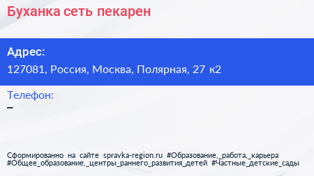 Буханка, сеть пекарен по адресу 127081, Россия, Москва, Полярная, 27 к2 в дальнейшем Организация, размещена в следующих категориях: