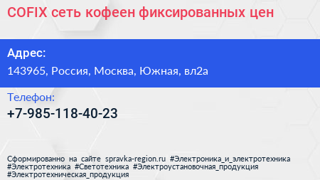 COFIX, сеть кофеен фиксированных цен по адресу 143965, Россия, Москва, Южная, вл2а в дальнейшем Организация, размещена в следующих категориях: