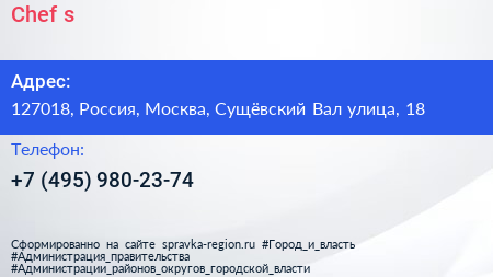 Chef`s по адресу 127018, Россия, Москва, Сущёвский Вал улица, 18 в дальнейшем Организация, размещена в следующих категориях: