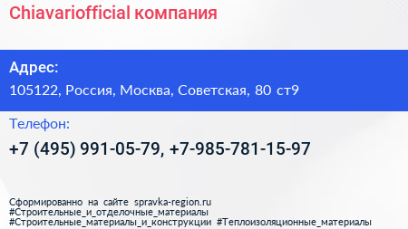 Chiavariofficial, компания по адресу 105122, Россия, Москва, Советская, 80 ст9 в дальнейшем Организация, размещена в следующих категориях: