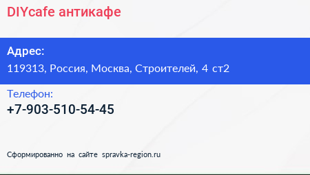 DIYcafe, антикафе по адресу 119313, Россия, Москва, Строителей, 4 ст2 в дальнейшем Организация, размещена в следующих категориях: