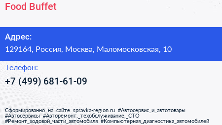 Food Buffet по адресу 129164, Россия, Москва, Маломосковская, 10 в дальнейшем Организация, размещена в следующих категориях: