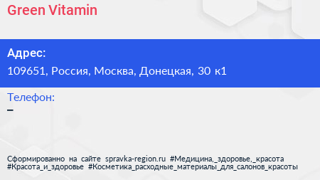 Green Vitamin по адресу 109651, Россия, Москва, Донецкая, 30 к1 в дальнейшем Организация, размещена в следующих категориях: