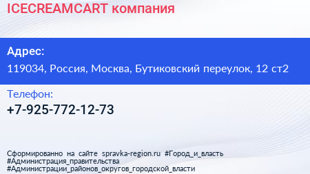 ICECREAMCART, компания по адресу 119034, Россия, Москва, Бутиковский переулок, 12 ст2 в дальнейшем Организация, размещена в следующих категориях: