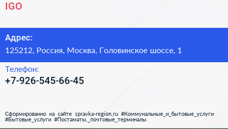 IGO по адресу 125212, Россия, Москва, Головинское шоссе, 1 в дальнейшем Организация, размещена в следующих категориях: