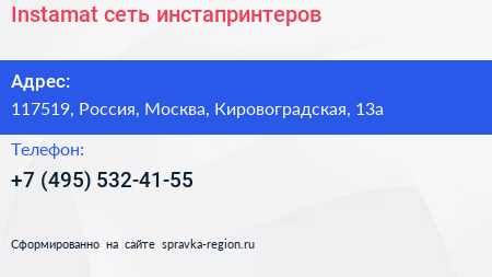 Instamat, сеть инстапринтеров по адресу 117519, Россия, Москва, Кировоградская, 13а в дальнейшем Организация, размещена в следующих категориях:
