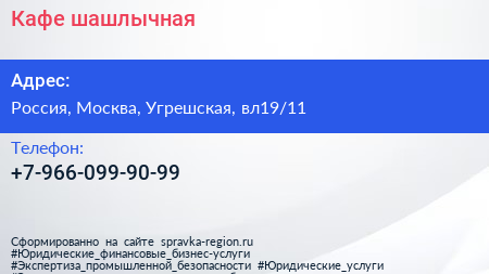 Кафе-шашлычная по адресу Россия, Москва, Угрешская, вл19/11 в дальнейшем Организация, размещена в следующих категориях: